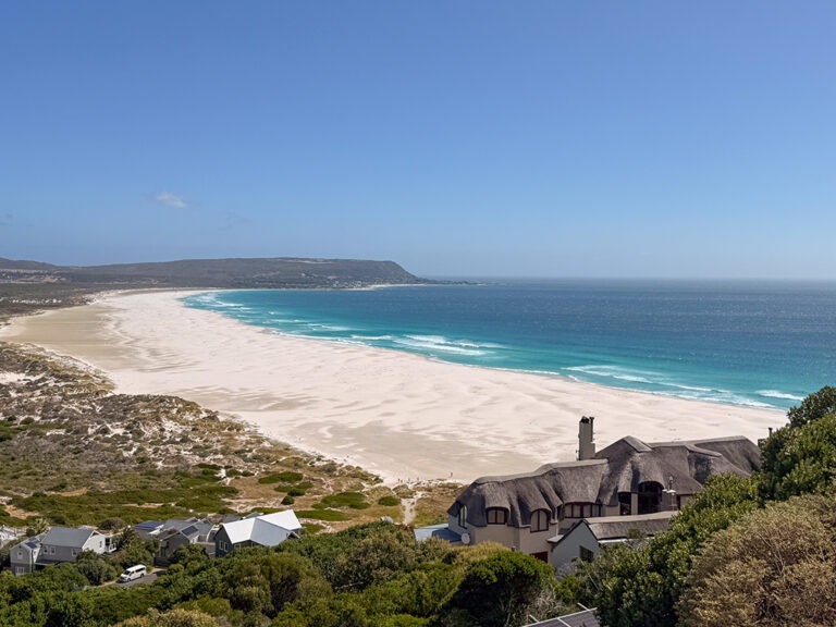 Noordhoek hat mit Sicherheit einen der beeindruckendsten Strände weltweit. Wenn man den Chapmans Peak von Kapstadt aus kommend fährt, dann komm man irgendwann um eine Kurve und man ist sprachlos von dieser Aussicht. Ein kilometerlanger weisser Sandstrand und es sind selten Menschen zu sehen, auch wenn sie da sind. Sie gehen nur einfach durch die größe des Strandes „verloren“. Noordhoek ist ein schöner Ort, um zu Mittag zu essen und wir empfehlen das urige Monkey Valley Resort, in dem sich das Restaurant Thorfynns befindet.