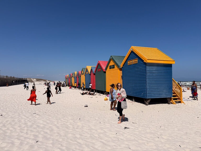 Muizenberg ist bekannt geworden durch sein Postkartenmotiv mit den vielen bunten Strandhäusern, die auch wirklich nett anzusehen sind. Auch der Strand selbst ist beeindrucken d groß, nur leider im Vergleich zu Noordhoek stark bebaut und dadurch weniger schön anzusehen. Ein Besuch lohnt sich aber auf alle Fälle.