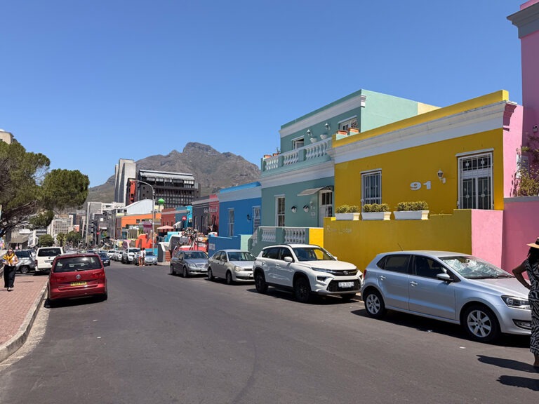Bo–Kaap ist sicher einer der bekanntesten Stadteile von Kapstadt. Nicht besonders gross, aber wegen seiner bunten Häuser und den Kunstgallerien einen Besuch wert. Einfach mal durchlaufen, es lohnt sich.