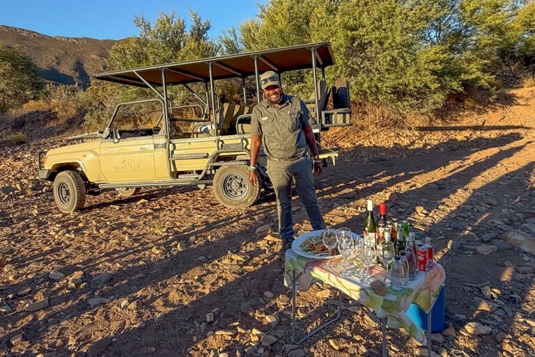 Die Strecke ist landschaftlich abwechslungsreich – Weinberge, Bergpässe und weite Karoo-Ebenen – und dauert je nach Verkehr etwa 2,5 bis 3 Stunden. Genau deshalb ist Mont Eco besonders beliebt bei Kapstädtern, die eine authentische Safari erleben möchten, ohne weit ins Landesinnere reisen zu müssen.